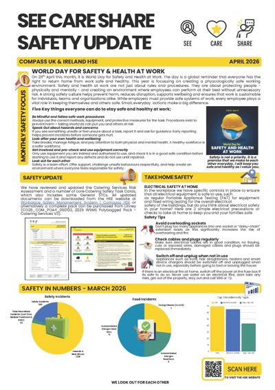 In the April edition of the See Care Share Update, we have a couple of key updates and awareness points. April 28th is World Day for Safety & Health at Work. We have provided five key tips for everyone to do, to ensure they stay safe and healthy at work. We have also updated the Catering Services Risk Assessment along with some of the core Safety Task Cards, a list of documents updated is included below. These can all be downloaded from the HSE Website or can be purchased as an updated pack from Linney.